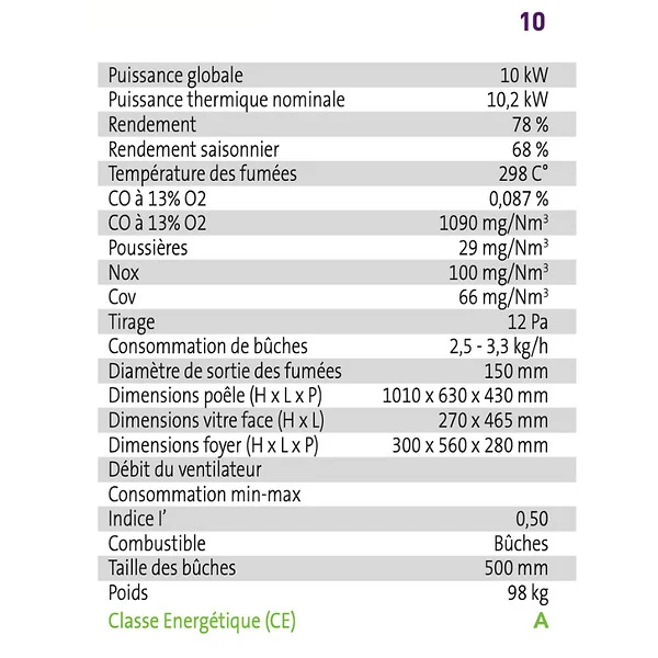 - Certifié Flamme verte 7 étoiles : gage d’une performance énergétique élevée et d’une faible émission de polluants.